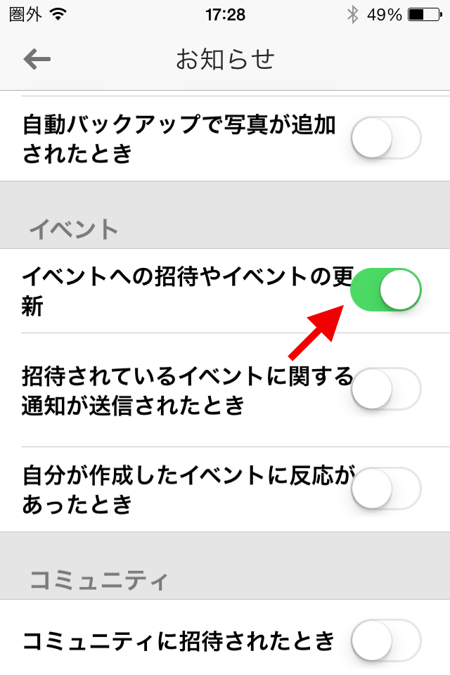 これでイベント招待状が届くとiPhoneにプッシュ通知(バイブ振動と音)が届くようになります。