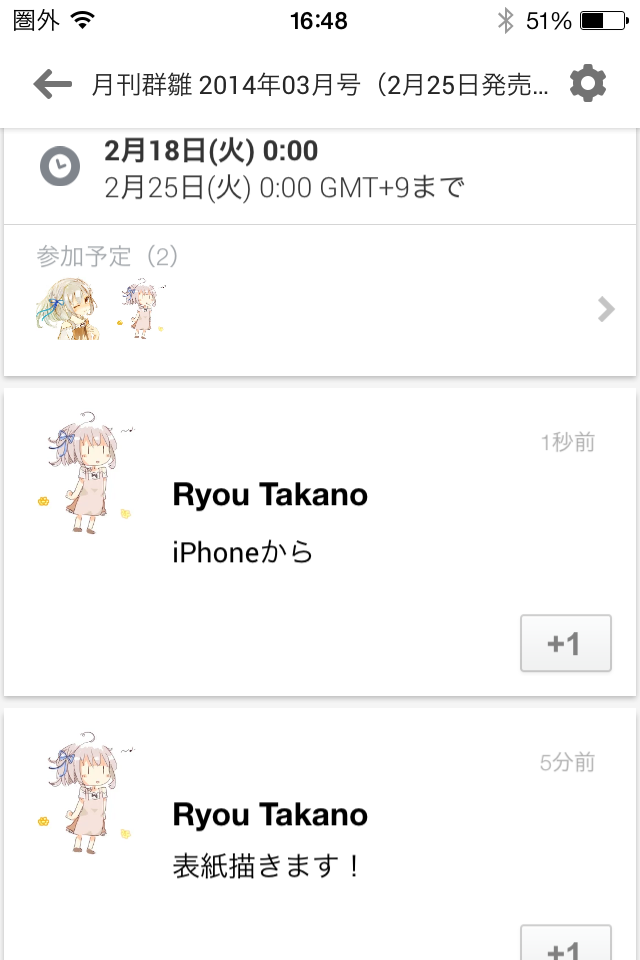 発売日から4週間前くらいに、Google+の日本独立作家同盟コミュニティへ掲載作品募集イベントを立てます。鷹野から、コミュニティ参加者全員に招待状が送られます。招待状が届くとGoogle+の通知ベルが赤くなります。