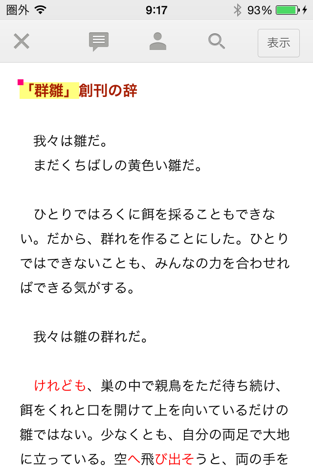 黄色いハイライトが入っている部分に、編集者からのコメントがあります。コメントへ返信するには、上部左から2番めのアイコンをタップして下さい。