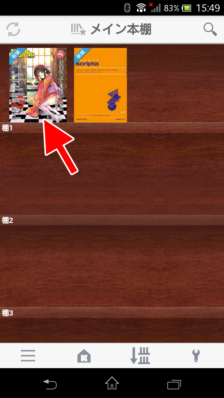 (4) 「メイン本棚」に取り込んだ本の表紙が表示される
