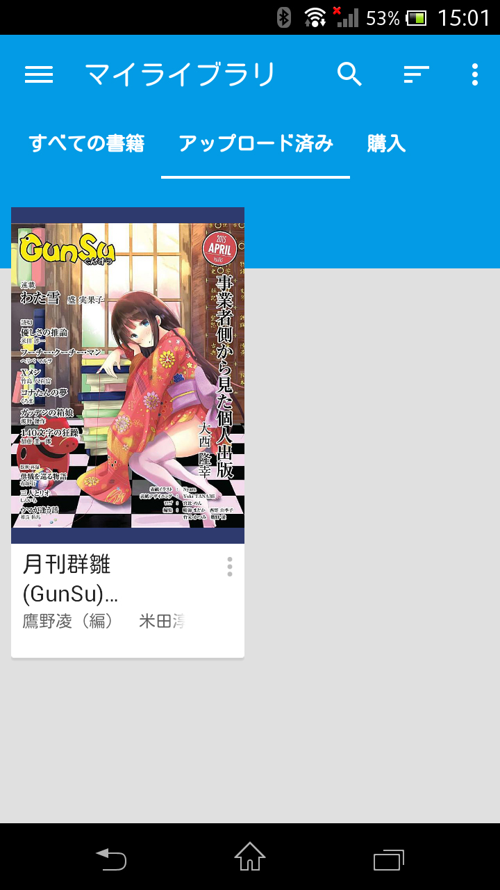 アップロードが完了すると、下図のように表紙のサムネイルが表示されます。
